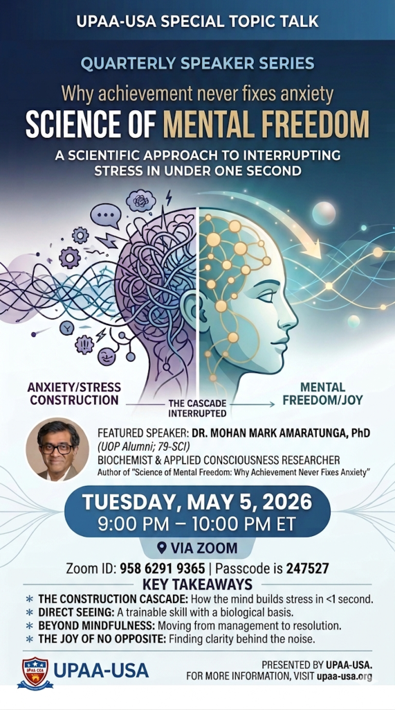 UPAAUSA Quarterly Talk Series: Science of Mental Freedom (May 5th, TUE at 9-10 pm EST) via Zoom